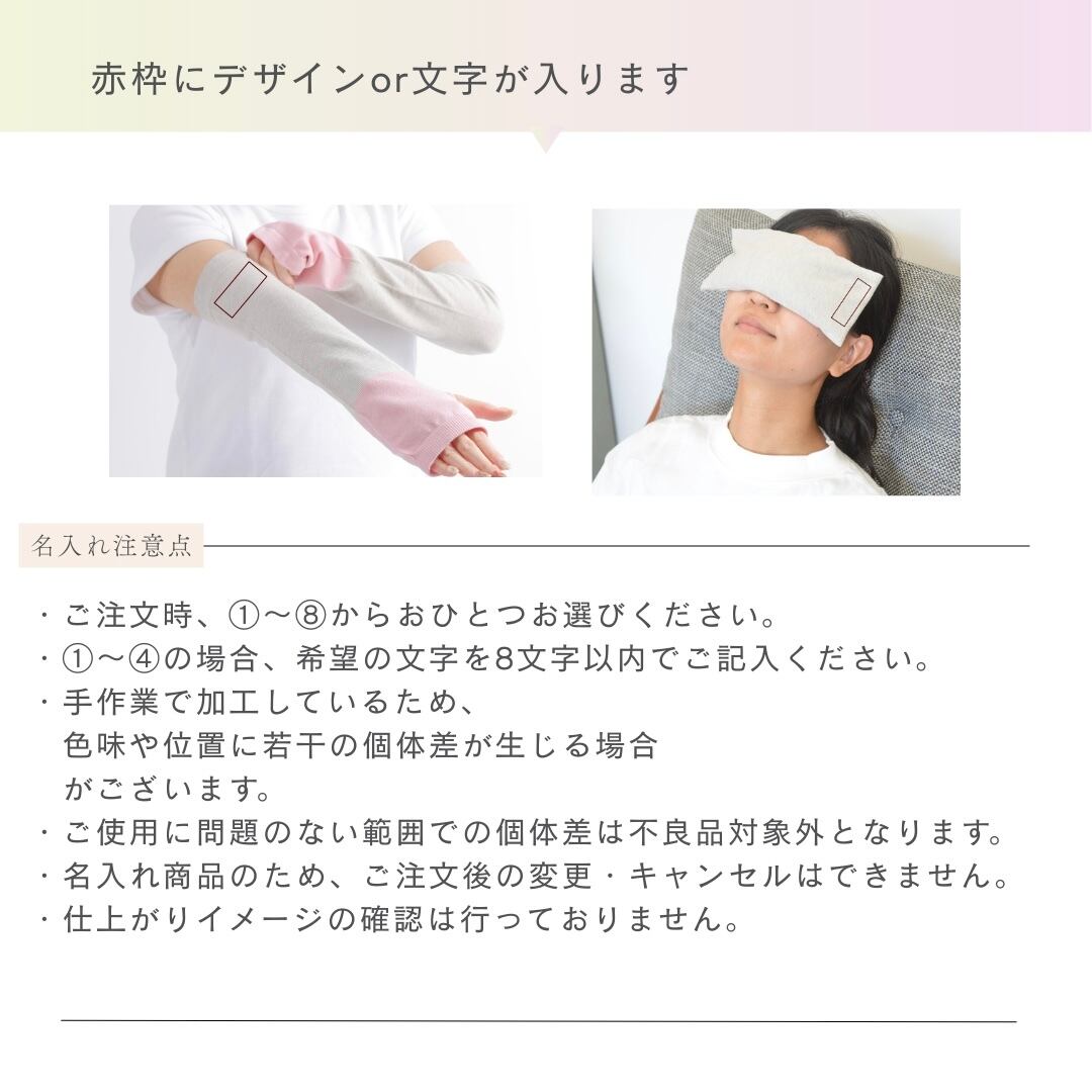 大切な方へお好きな文字(アルファベット)または、イラスト(ネコまたはイヌ)を選択して、アームカバーにプリントできるサービスを用意しました。