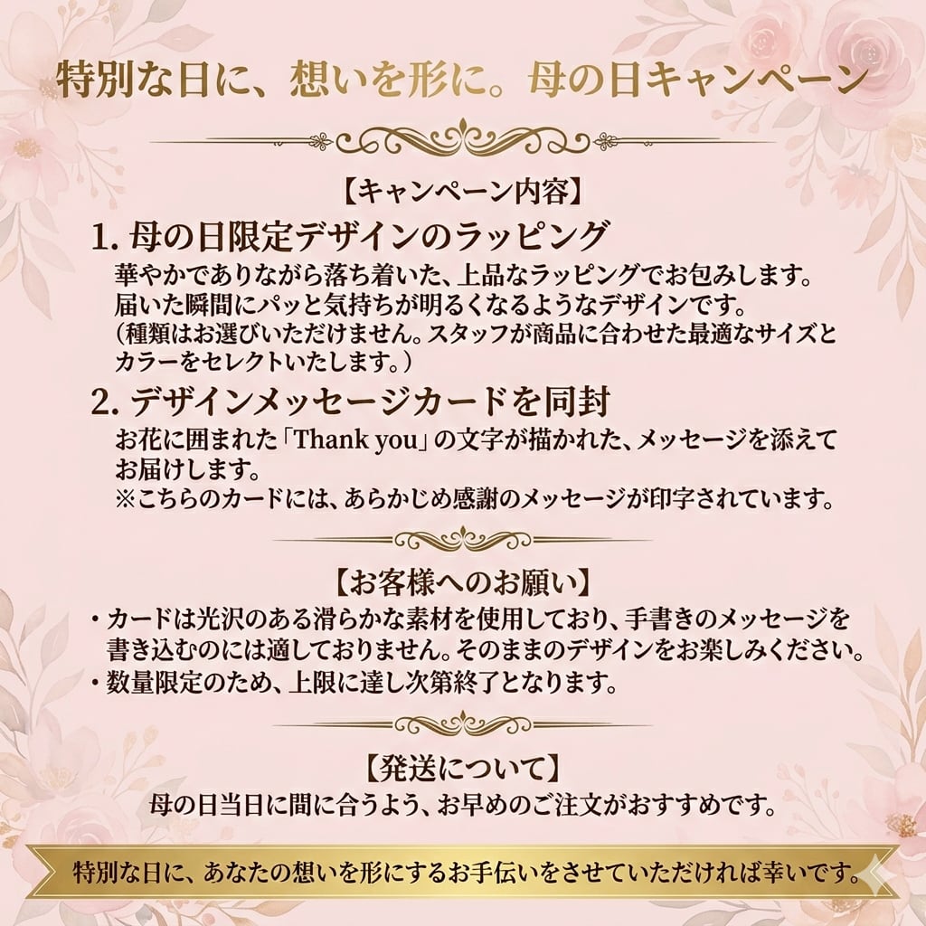 ※母の日用のラッピングをご希望の方は「母の日ラッピング希望」とご記入ください。