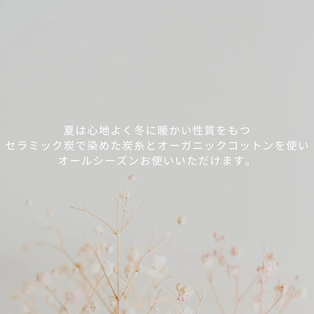 「炭糸パイルソックス」は、無農薬で栽培されたコットンをセラミック炭で染めた、独自の日本製の糸(KinoKoto の炭糸)を使用しています。